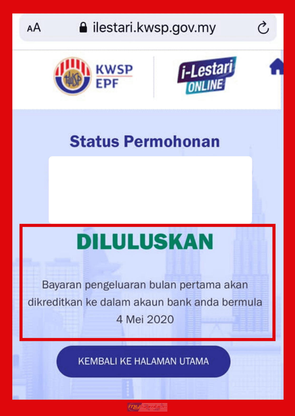 Semakan Online Dah Boleh Check Tau Status Permohonan Pengeluaran I Lestari Kwsp Boleh Check Online Je Di Portal Rasmi Kwsp Pembayaran Akan Dibuat Bermula 4 Mei Nanti Facebook
